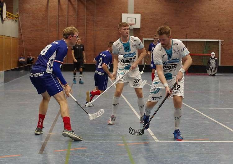 Das sollte sich direkt zu Spielbeginn auch auszahlen. Die Storms waren ab dem Anpfiff hellwach und drängten die Gäste zunehmend in die eigene Hälfte. Während die ersten guten Angriffe noch das Tor verfehlten, war es Birger Dethlefsen, der in der 7. Minute das Torfestival in der Kieler Tallinnhalle eröffnete. Die Vorlage zum 1:0 kam von Finn Silbernagel, der nach langer Verletzungspause endlich wieder für die Storms auflaufen konnte. Wenig verwunderlich, dass es Silbernagel gewesen ist, der nur 12 Sekunden nach der 1:0 Führung auf 2:0 erhöhte. Während die Euphorie die mit 90 Zuschauern gut gefüllten Ränge der Tallinnhalle erreichte, war es Anton Hautzel, der später zum Jamasi Steuermann des Spiels gewählt wurde, welcher in der 8. Spielminute das erste Tor der Gäste erzielte. Motiviert durch das Tor zeigten die Gäste nun, warum sie im letzten Jahr als Aufsteiger einen überraschenden dritten Tabellenplatz in der Liga erreichen konnten und drehten binnen sieben Spielminuten die Partie auf 2:4. Das Spiel ging nun hin und her und beide Torhüter hatten etliche Gelegenheiten, um sich in diesem rassigen, jedoch stets fairem Spiel auszuzeichnen. In der 19. Minute war es dann der Jamasi Steuermann des Spiels der Storms, Jelde Ihloff, der zum 3:4 verkürzen konnte. Während die Storms anscheinend im Kopf noch den Anschlusstreffer bejubelten, stellten die Gäste nur 8 Sekunden nach dem Tor den alten Abstand wieder her. Mit 3:5 ging es schließlich auch in die erste Drittelpause.
