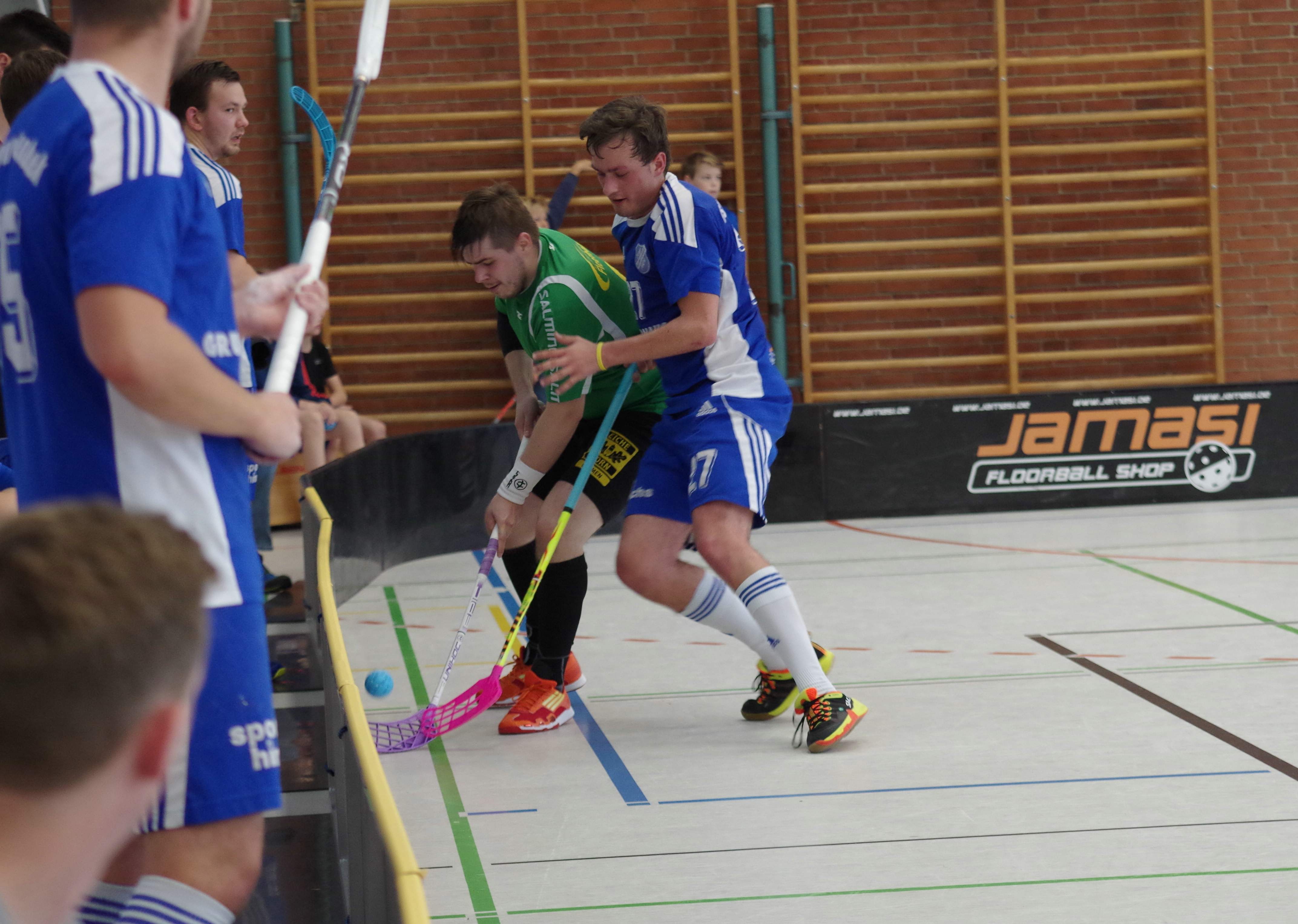 Personell etwas geschwächt – es fehlten unter anderem der neue Kapitän Fabian Mieloch, der ehemalige Kapitän Jannik Drews, Christoph Giez sowie Rekonvaleszent Fabian Sell, der nach seinem Kreuzbandriss zeitnah wieder in den Spielbetrieb einsteigen wird – starteten die Gastgeber dennoch konzentriert in die Partie und ließen gegen den Favoriten vom TV Eiche Horn Bremen von vornherein nur wenig zu. Der letztjährige Staffelsieger und Beinahe-Aufsteiger konnte zwar deutlich mehr Ballbesitz verzeichnen, wirklich hochkarätige Torchancen waren auf beiden Seiten jedoch eher Mangelware. Gegen Ende des ersten Drittels nahm der Fokus der Gastgeber jedoch deutlich ab und die Hektik in einem gleiche Maße zu, was sich Bremen in der 16. und 20. Minute zu Nutze machte und sich mit einer 2:0-Führung in die Pause verabschiedete.