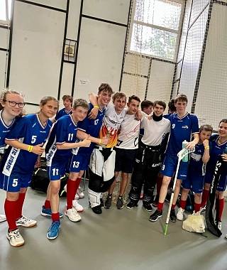 Nach vielen Stunden Zug und U-Bahn fahren waren wir endlich in unserem Hotel und konnten auch gleich unsere Zimmer beziehen. Nach ein bisschen Freizeit und Erholung haben wir uns noch für die kommenden Tage besprochen. Recht zeitnah sind wir schlafen gegangen, um ausgeruht für den nächsten Tag zu sein. Den haben wir dann erstmal mit Feiern begonnen. Es war Lasses und Lennarts 16ter Geburtstag. Ein sehr schöner Start in den Tag, aber dann ging es auch schon recht schnell zu unserem ersten Spiel. Sicher stieg bei den meisten von uns die Aufregung, da unser erstes Spiel gegen den Gewinner der Prag Games 2021 war. Wie erwartet kam es zu einer recht hohen Niederlage, aber wir waren alle echt stolz auf uns, dass wir nicht aufgegeben haben und uns trotzdem ganz gut gehalten haben. Nach einer Stärkung am Mittag, hatten wir unsere zweite Spielbegegnung in einer anderen Halle. Leider haben wir auch dieses Spiel verloren. Trotzdem haben wir unsere gute Laune behalten und am Abend noch alle Spiele zusammen gespielt und später noch auf unseren Zimmern viel geredet und gelacht. Auch unser drittes Spiel am nächsten Vormittag haben wir leider verloren. Was aber sehr blöd war, dass unser Goalie Lenne verletzt wurde und zur Sicherheit ins Krankenhaus gebracht wurde. Durch diese völlig unerwartete Situation musste unser Goalie Ben vollkommen unaufgewärmt und sehr spontan einspringen. Er hat es bis zum Spielende richtig gut gemacht. Unser letztes Spiel am Nachmittag hätten wir unserer Meinung nach gewinnen können. Deshalb waren viele von uns richtig enttäuscht, dass wir es trotzdem verloren haben. Das Gute aber war, dass Lenne inzwischen wieder bei uns war und ein Teil von unserem Spiel mitansehen konnte. Meinen persönlichen Frust hab ich mit Sachen aus dem Floorballshop bekämpft. Am Abend wurde es auch lustig, da wir eine schwedische Jungsmannschaft kennengelernt haben und mit einem von ihnen bis morgens halb drei die ganze Zeit verbracht haben.