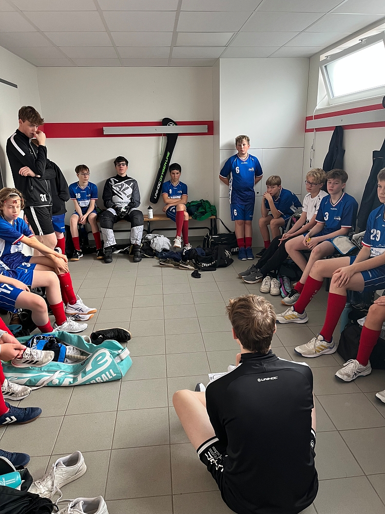 In voller Besetzung mit 15 Feldspielern und 1 Goaly lief die U15 in der Sporthalle Bordesholm ein. Mit Schenefeld war der größte Konkurrent um die Tabellenführung angereist. Beide Teams hatten in der laufenden Saison alle Spiele gewonnen und bisher keinen einzigen Gegentreffer kassiert. Dementsprechend groß war die Anspannung.