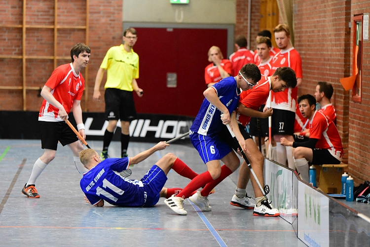 Im Gegensatz dazu musste das Trainerteam heute auf einige Spieler verzichten und so traten die Storms nur mit 14 Feldspielern an. Doch das sollte sich erstmal nicht negativ auf das Spiel der Storms auswirken. Die Schützlinge von Gebhardt und Sell fanden schnell ins Spiel, setzten den Gegner so schon früh unter Druck und so gelang bereits in der zweiten Minute der erste Treffer. Nghiem staubte nach einem Freischlag von Riedel zum 1:0 ab. Auch in der Folge waren die Kieler das stärkere Team, ließen Ball und Gegner gut laufen, brauchten aber bis zur 18. Minute bis zum nächsten Treffer. Dann klingelte es aber direkt zweimal im Hamburger Tor und die Teams gingen mit 3:0 in die erste Pause.